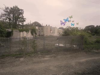 My submission uses three of the source images: The butterfly (many times), the leaves (recolored), and the sky. The sky forms the background of concentric circles. I first copied the image to make an up/down and left/right symmetrical version, then used a custom Processing script to map multiple copies of that image to concentric bands.