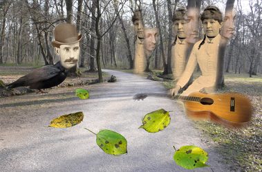 I used the Path, Sky, and Leaves images. I added my own photos of trees, roots, and tree shadows in Photoshop. I then adjusted the color and contrast to all be consistent with all the elements.