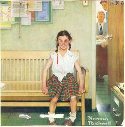 He is iconic because he held a lens up to us that showed us who we were, and who we could be: not rose-tinted, but sunshine-colored. The one of the girl on the bench outside the principal's office is a favorite Rockwell of mine; she's so pleased, she doesn't care about being in trouble... much.