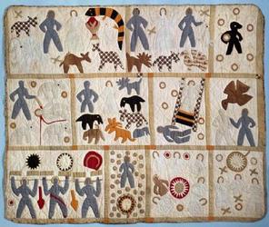 While quilting was brought to America by Europeans, "patchwork" is now known the world over as an American art & craft with a rich history. The stories of thousands of women, their families, and their communities are only known to us via the quilts they created. If you have to pick just one*, the story of Harriet Powers is a bridge between eras, continents, folk art and commerce, and even technology. The Bible Quilt is now in the Smithsonian quilt collection.