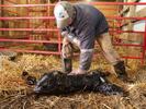 Panda, standing six feet tall and weighing almost a ton, is everything a show cow should be: broad-backed and round-rumped, with sturdy legs holding up her heft. Her hide — thick and black, with splotches of creamy white — fits her name.