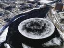 Whether reminiscent of the moon's surface or "a big duck-go-round," a circle of ice entrances as it bobs and spins on a river in Maine.