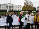 Lafayette Square across from the White House is a popular spot for people with a political bone to pick. Next to the persistent "ban nuclear weapons" sign, protesters come here to picket in front of the president's home. On Wednesday, there's a group of women gathered behind a banner scrawled ...