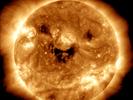 The dark patches, known as coronal holes, are regions where solar wind escapes more quickly and readily into space. Geomagnetic storms can disrupt GPS and hurt the power grid.