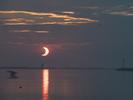 During a partial solar eclipse, the moon is not perfectly aligned with the Earth and sun, so it will not completely cover the sun.