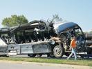 The bus was traveling west on Interstate 70 when it crashed into commercial vehicles parked on an exit ramp, the Illinois State Police said.