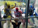 Window washers donned the colorful tights and appeared outside Children's Hospital of Philadelphia, climbing down the walls and thrilling the young patients.
