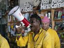 KOKOKO! are sonic warriors. They seized control of the Tiny Desk, shouting their arrival through a megaphone, while electronic sirens begin to blare.