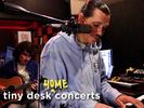 Ed Sheeran performs a Tiny Desk (home) concert surrounded by bookshelves and a host of world-class musicians.