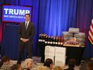 Despite three more primary and caucus victories on Tuesday, Trump eschewed a traditional victory speech, adding in a press conference — and something else: a table piled high with a veritable Trump-ucopia ...