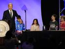 In a speech before the International Brotherhood of Electrical Workers union, Biden assured the audience that he had permission to embrace a union worker and put his arm around a child onstage.