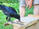 A team of six trained birds — rooks, actually — is collecting paper and cigarette stubs at the Puy du Fou park in western France. They drop the trash into a container in exchange for food.