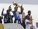 James and the Cavs hoist the NBA trophy to 20,000 screaming fans at the airport as the city celebrates its first major sports championship in 52 years.