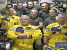 Russian cosmonauts board Space Station wearing blue and yellow, the colors of Ukraine