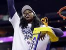 With 0.1 seconds left on the clock, guard Arike Ogunbowale hit a 3-pointer to give Notre Dame the NCAA championship over Mississippi State 61-58 Sunday night in Columbus, Ohio.