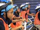 "What's the first thing we do when we get to our bike?" David Gesualdi asks his second-graders. "Check the air!" they yell back at him.