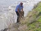 The newborn got separated from its mother while trying to cross the Lamar River. A man stepped in to try to help, but only ended the animal's chances of survival, the National Park Service says.
