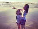 Her 4-year-old sister, Jackie, swoops in for a bite — and a hard push.