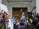 "Protesters gathered outside the governor's mansion in Little Rock on Tuesday morning. A final vote in the state House could come later in ...