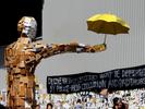 The camp is a combo street fair, outdoor art gallery with political sculptures, propaganda posters ...