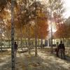 The winning design for a proposed AIDS Memorial in the West Village on the former site of St. Vincent’s Hospital campus features a grove of white birch trees surrounded by a triangle of tall mirrored walls.