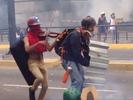 In a video filmed during the ongoing protests in Caracas, 23-year-old Wuilly Arteaga can be seen playing the Venezuelan national anthem as tear gas billows around him.