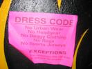 No flat-billed hats. No long white T-shirts. No large chains. No sleeveless under shirts. No athletic apparel. No sports jerseys without collars. No excessively baggy clothing.