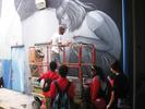 Jose de Diego Middle School has large expanses of facade that are almost begging for decoration. To raise funds for arts education at the school, artists are helping transform its walls with paint.