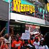 Hundreds of workers protested Thursday outside fast food restaurants from three different chains in Manhattan. Wendy's, McDonald's and Burger King are the targets of a nationwide day of action by groups demanding higher wages for workers and the right to form unions.