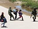 After closing a bridge linking Guatemala with Mexico, a caravan of Central American migrants waded across a river connecting the countries but their journey is being stopped by Mexican troops.