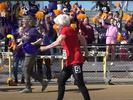 Julia "Hurricane" Hawkins crossed the finish line in 1:02:95. "It was wonderful to see so many family members and friends. But I wanted to do it in less than a minute," she said.