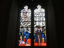 The windows, titled "Now and Forever," were created by artist Kerry James Marshall. They show a group of protesters holding up large signs that read "Fairness" and "No Foul Play."