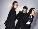 Corin Tucker, Carrie Brownstein and Janet Weiss seem poised to carry the weight of the world, or at least get inside the person holding one of the backbreaking pieces.