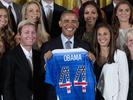 The World Cup-winning U.S. women's national soccer team was honored at the White House today, where Obama praised the champions.