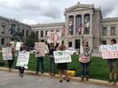 Led by Max Geller, a handful of people protested Monday outside Boston's Museum of Fine Arts.