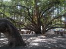 The magnificent tree is the size of a city block, the product of doting efforts by the Lahaina's residents. Aerial footage shows the tree charred but still standing amid a downtown devastated by fire.