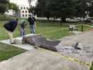 Police say a man drove a 2016 Dodge Dart into the 6,000-pound granite slab less than a day after it was installed on the grounds of the state Capitol. The man reportedly took video as he accelerated.