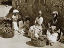 An enslaved woman is sitting with her white charge in her lap. She is well dressed in a pristine white headdress and an off-the-shoulder blouse, wearing bracelets and rings and necklaces. She stares straight at the camera, somberly.