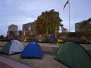 The men, resettled there after years in detention, say they aren't getting enough assistance. Camped outside the U.S. Embassy, they are seeking housing and other help reintegrating into society.