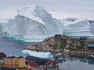The giant mountain of ice towers is threatening a tiny village, causing authorities to evacuate residents.