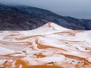 An amateur photographer in Algeria captured beautiful images of a rare phenomenon this week: the red and white swirl of snow dusting sand dunes in the Sahara.