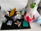 In a corner of the convention center where journalists from around the world are working, volunteers diligently fold origami paper into beautiful and elaborate designs.