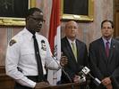 Following death threats, the contractors wore flak jackets and helmets as they dismantled a monument to members of a white supremacist group who attacked the city's racially integrated police force.