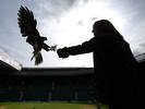 Pigeons Fly In Fear As Rufus The Hawk Guards Wimbledon's Grass