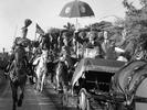 It shows an American president riding through the streets of a city in Pakistan in a gleaming horse-drawn carriage, as if he's the Queen of England.