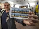 Ukrainians wait in line for hours to buy commemorative Snake Island postage stamps