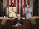 In a historic first, President Biden delivered his joint address to Congress flanked by two women: Vice President Harris and House Speaker Nancy Pelosi.