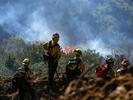 Firefighters clean up after a wildfire that threatened California's Laguna Beach