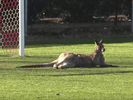 Bounding onto a field in Australia's capital, the marsupial caused players to scatter and then wait around for a grand exit.