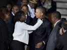Obama, at the start of a planned three-day visit, was greeted on the tarmac in Nairobi by President Uhuru Kenyatta and other top Kenyan officials, and he ...